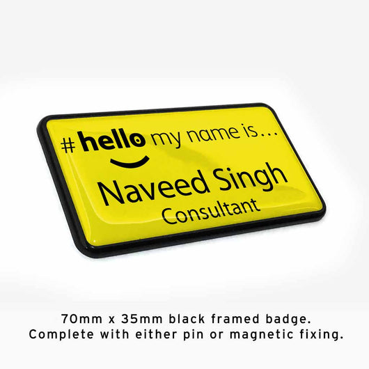 70mm x 35mm Gloss black framed staff name badge